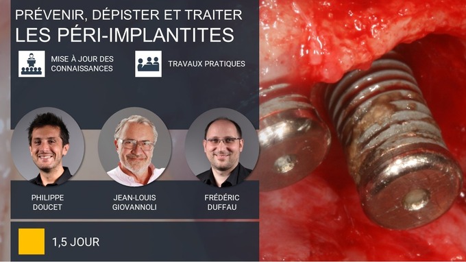 Vous pourrez de surcroît mettre vos nouvelles connaissances en pratique au cours de travaux pratiques réalisés sur des maxillaires imprimés en 3D à partir de situations réelles de patients atteints de péri-implantites.